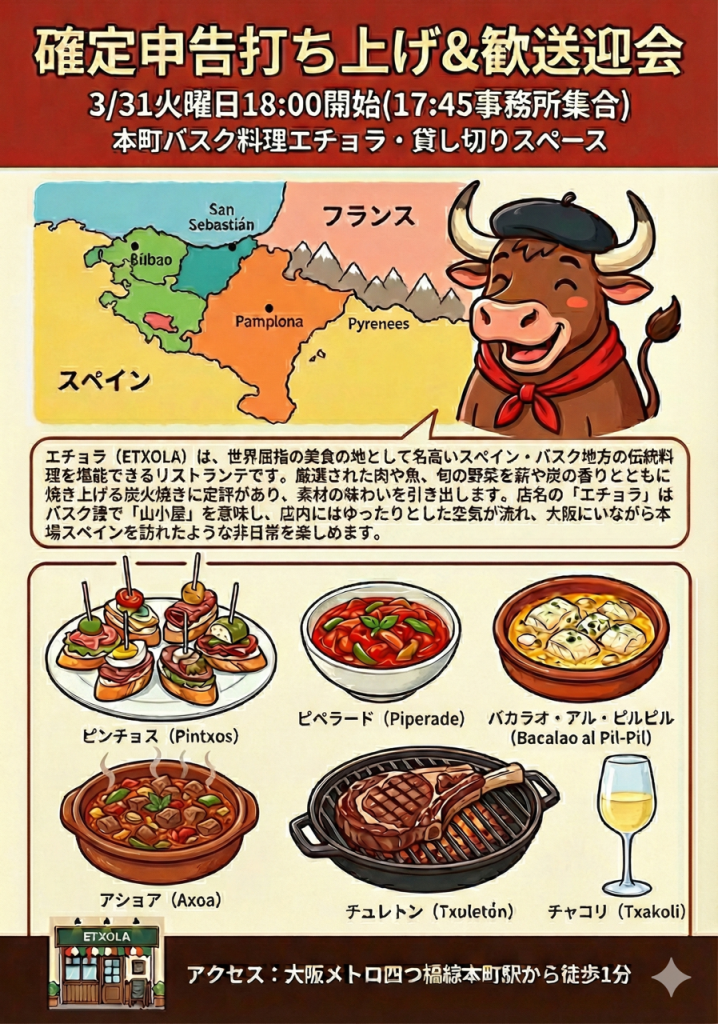 令和7年分所得税確定申告も無事に終え、恒例の確定申告打上げ会を行いました。